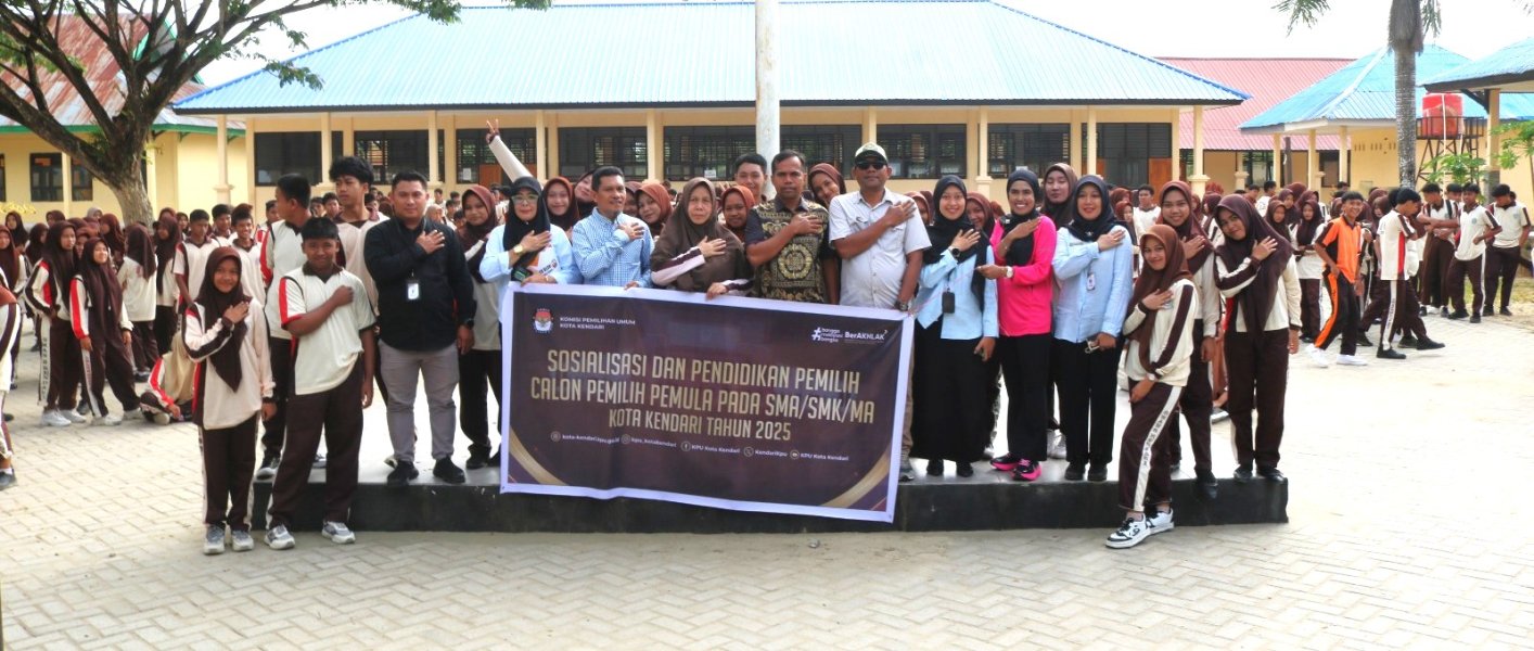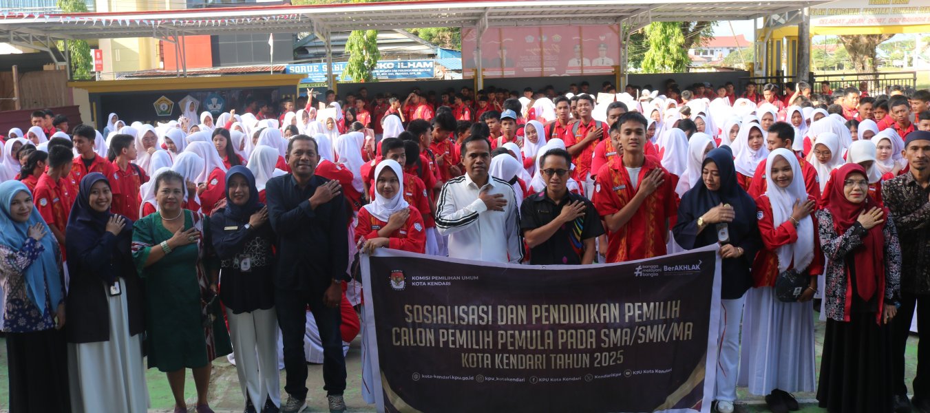 kota-kendari.kpu.go.id Kendari, 25 September 2025 Untuk meningkatkan pengetahuan, kesadaran, dan partisipasi politik generasi muda khususnya pemilih pemula, KPU Kota Kendari melaksanakan kegiatan sosialisasi Pendidikan Pemilih bagi pemilih pemula bertempat di pelataran SMAN 9 Kendari, Kamis(25/9/2025) pukul 07.00 WITA. Ketua Divisi Sosdiklih, Parmas dan SDM, Arwah hadir menyampaikan materi. Arwah memaparkan asas-asas pemilu dan pemilihan. "Dalam pemilihan umum maupun pemilihan kepala daerah, kita memegang teguh asas-asas pemilu yaitu Langsung, umum, bebas, rahasia, jujur dan adil. Semua itu wajib dipegang teguh baik itu oleh penyelenggara pemilu, pemilih, maupun peserta pemilihan." jelas Arwah. Di kesempatan yang sama, Arwah juga menjelaskan syarat untuk menjadi pemilih, dan hal-hal apa saja yang harus diperhatikan untuk memilih calon pemimpin. "Penting untuk memperhatikan visi misi dan latar belakang dari calon pemimpin, jangan sampai kita salah menilai. itu artinya sama saja dengan menghancurkan masa depan kita." lanjut Arwah. Terakhir Arwah mengajak seluruh siswa untuk berpartisipasi dalam pemilihan umum dan pemilihan kepala daerah ke depan. Kegiatan sosialisasi ditutup dengan sesi tanya jawab yang diberikan oleh Arwah selaku narasumber pada kegiatan tersebut dan ketua divisi Teknis Penyelenggaraan Pemilu, La Ode Hermanto, yang diikuti dengan antusias oleh seluruh siswa SMAN 9 Kendari. Turut hadir mendampingi, Kasubbag Parhubmas dan SDM, Firmawati F. dan staf. (humasKPUKendari:Di/foto:Dm)