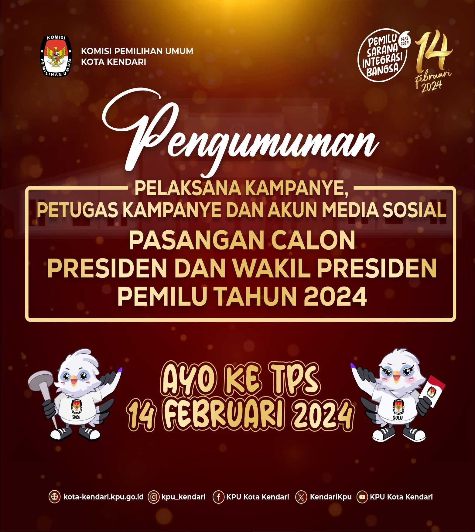 Pengumuman Pelaksana Kampanye, Petugas Kampanye dan Akun Media Sosial Pasangan Calon Presiden dan Wakil Presiden Pemilu 2024