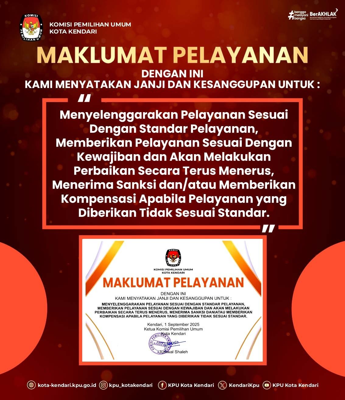 Setiap suara masyarakat memiliki nilai penting dan menentukan dalam penyelenggaraan demokrasi. Komisi Pemilihan Umum Kota Kendari berkomitmen untuk memberikan layanan kepemiluan yang adil, setara, dan tanpa diskriminasi kepada seluruh pemilih. Hal ini mencerminkan penghargaan terhadap hak politik setiap warga negara, serta memastikan bahwa seluruh lapisan masyarakat, termasuk kelompok rentan, memperoleh akses dan pelayanan yang sama dalam setiap tahapan pemilu.