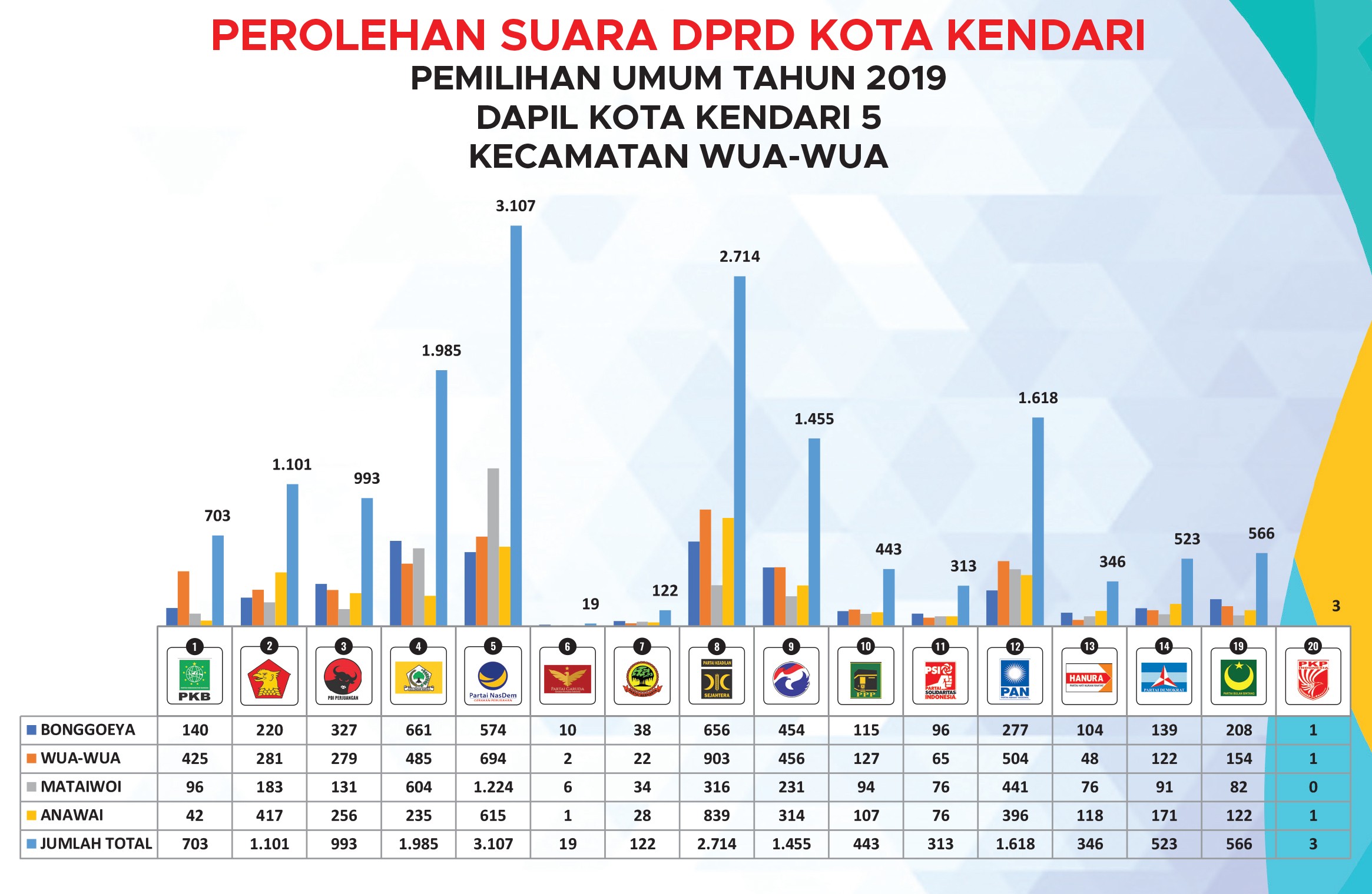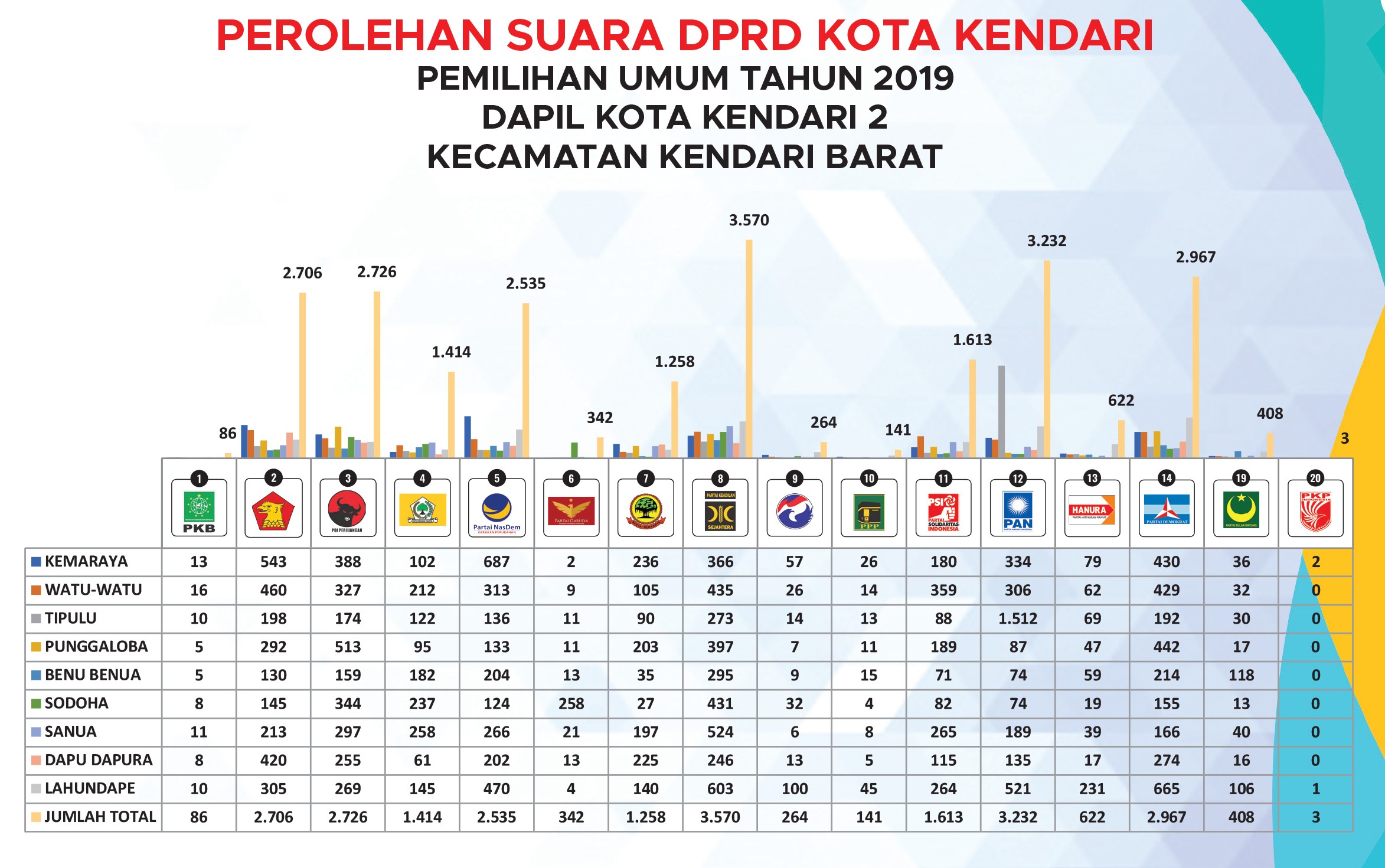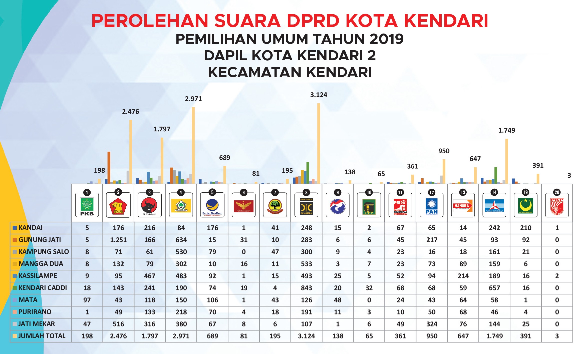 Perolehan Suara Pemilihan DPRD Kota Kendari Pemilu 2019