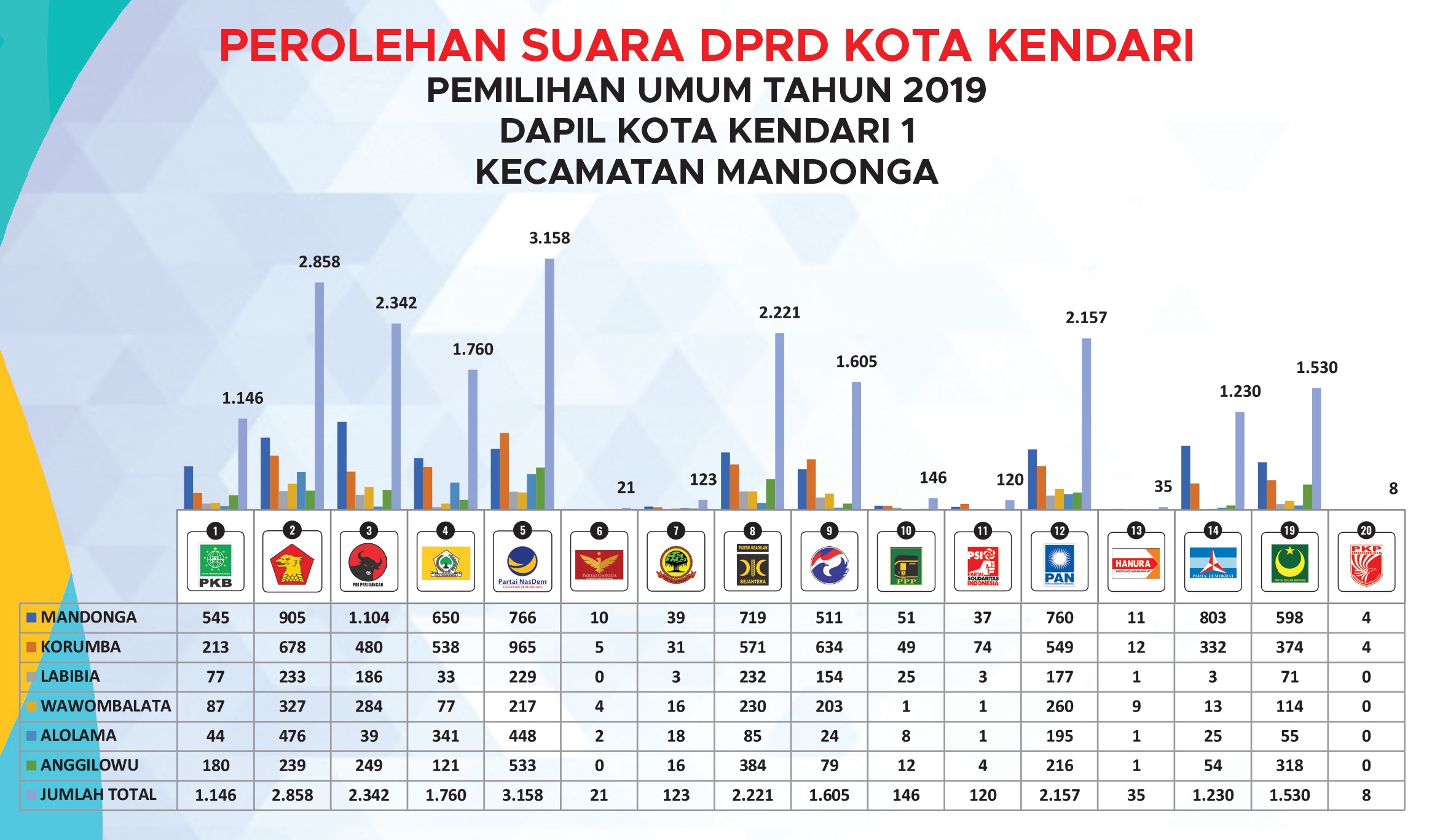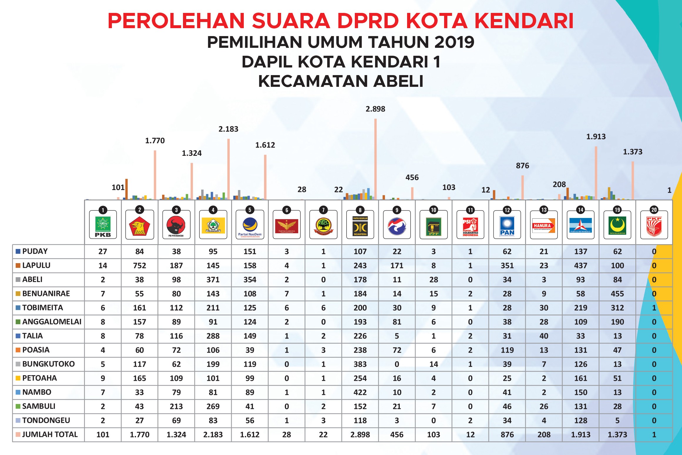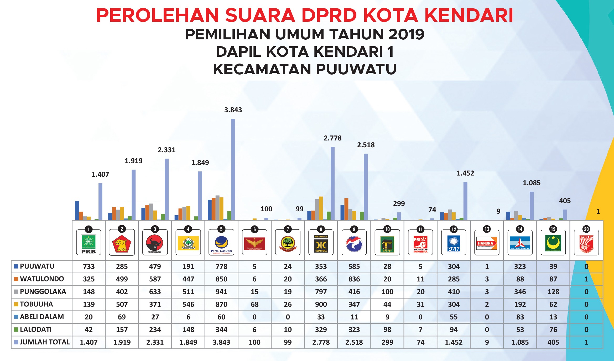 Perolehan Suara Pemilihan DPRD Kota Kendari Pemilu 2019