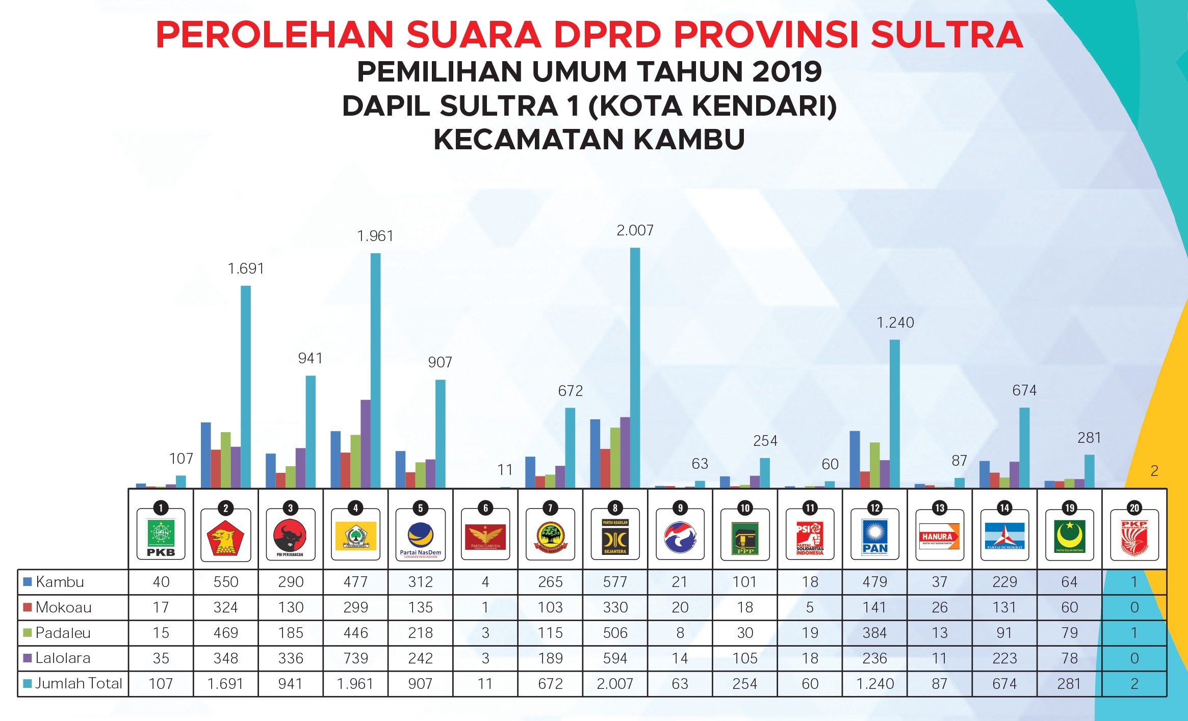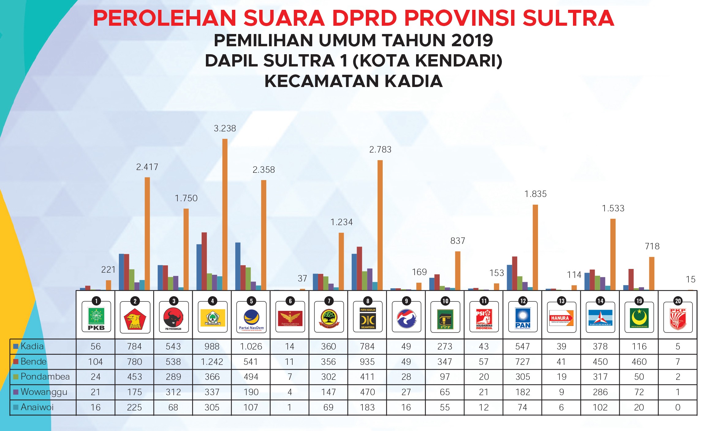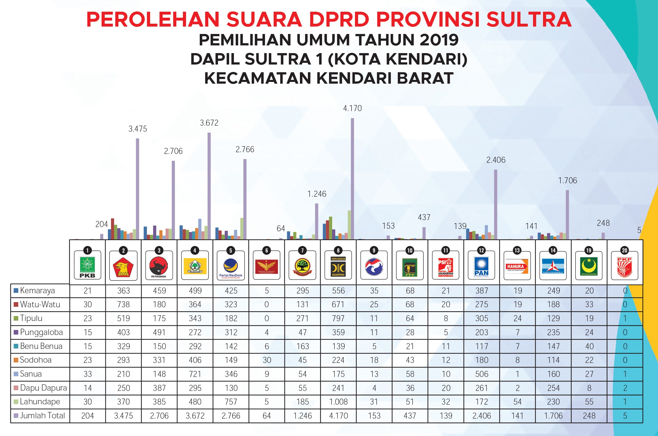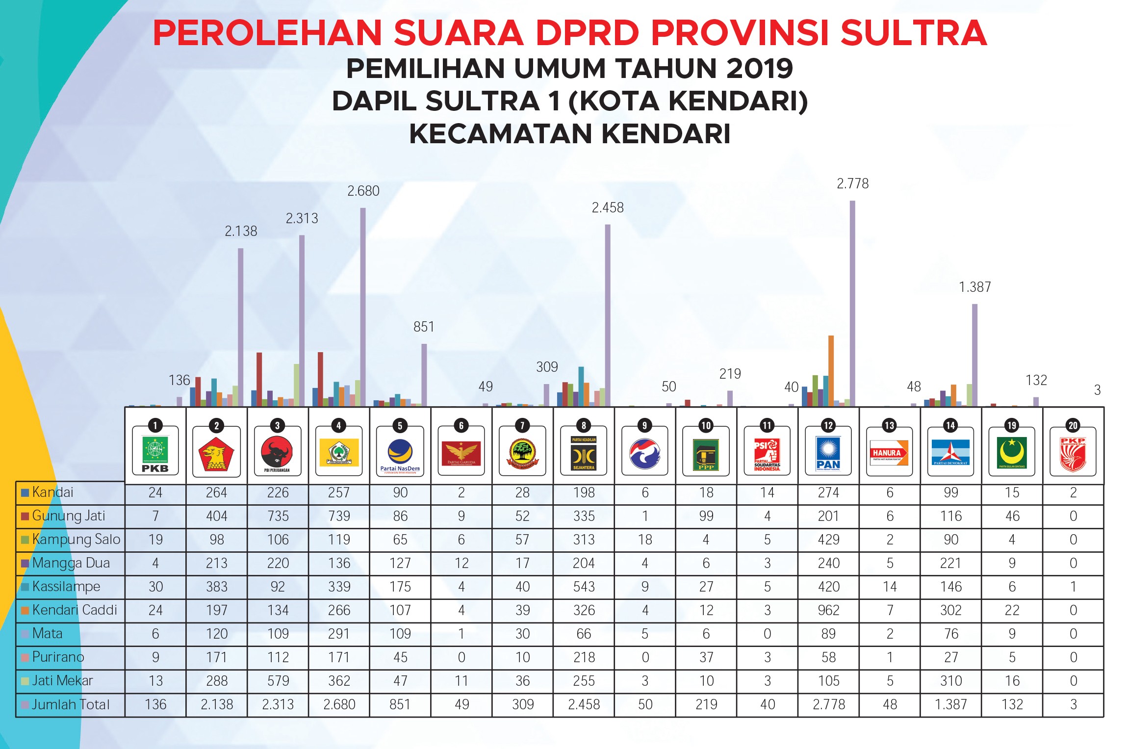 Perolehan Suara Pemilihan DPRD Provinsi Sulawesi Tenggara Pemilu 2019 di Kota Kendari