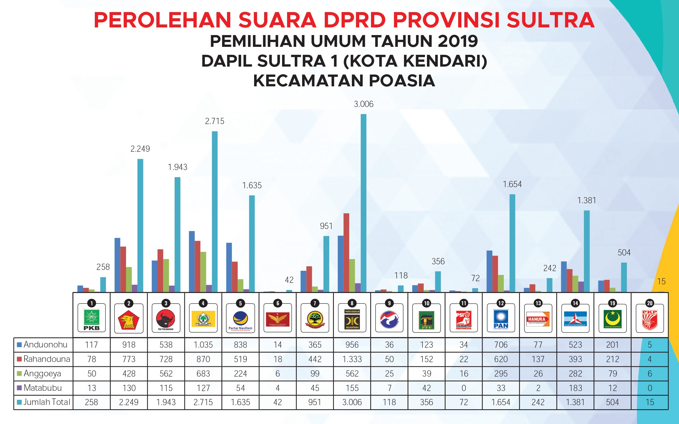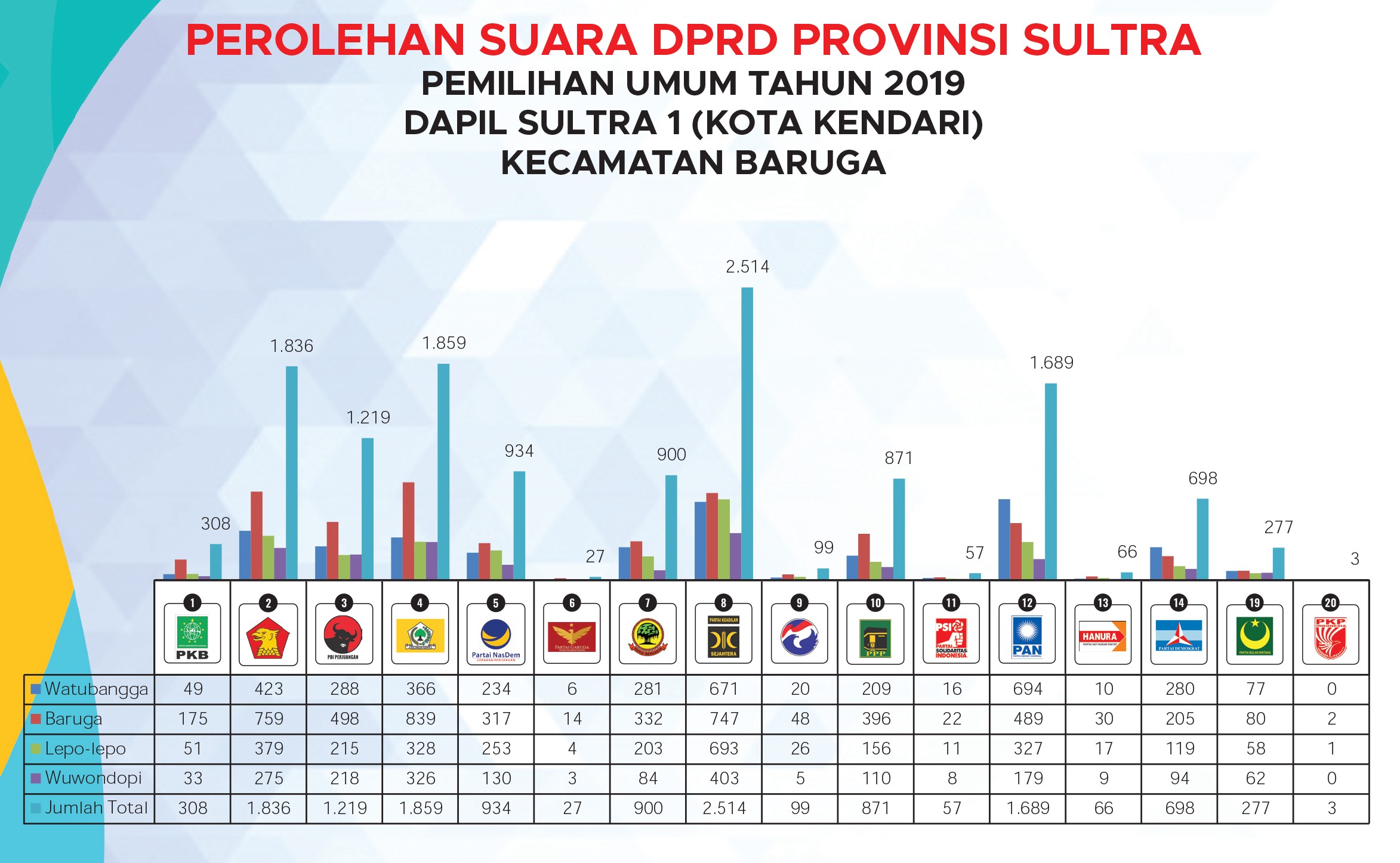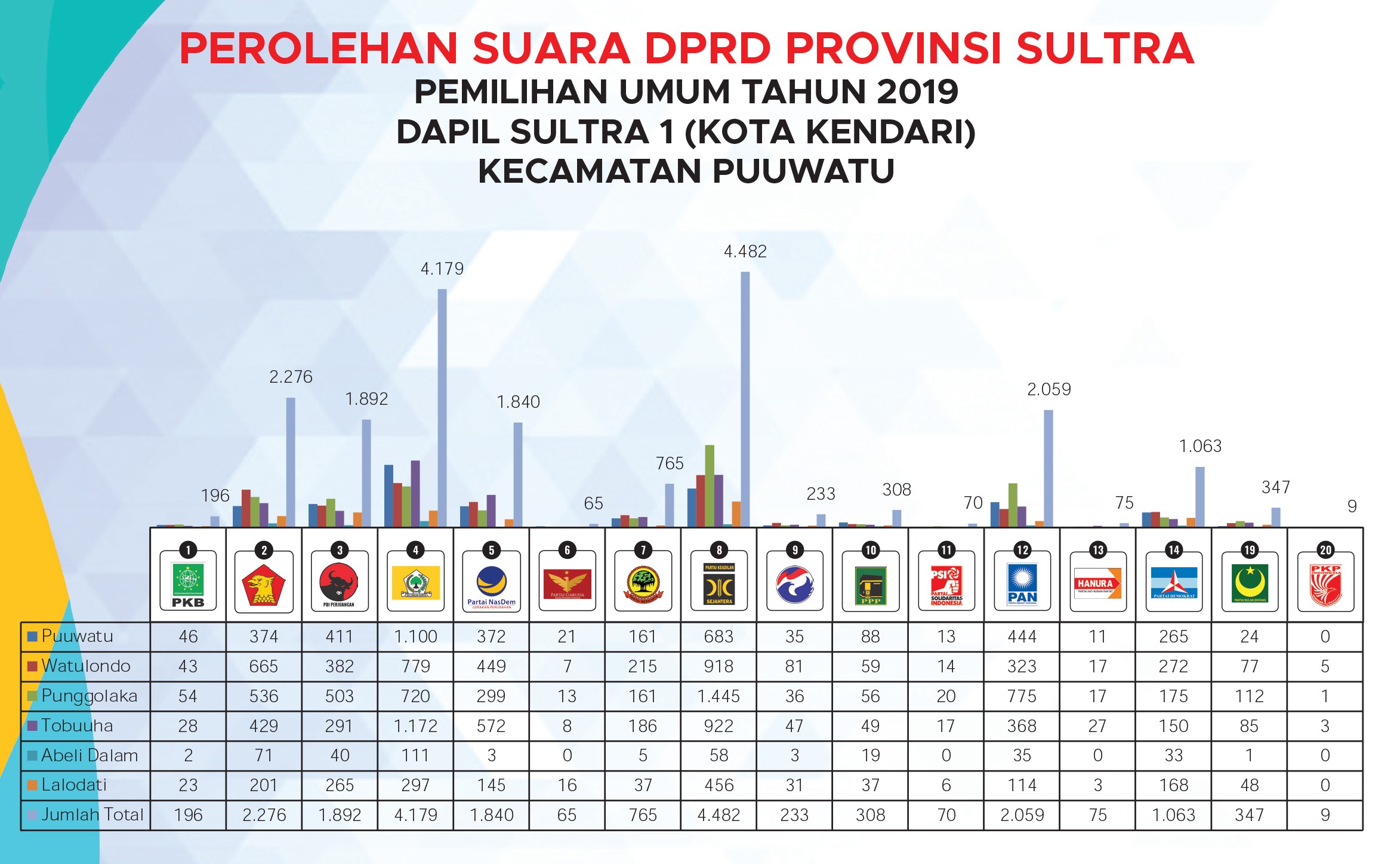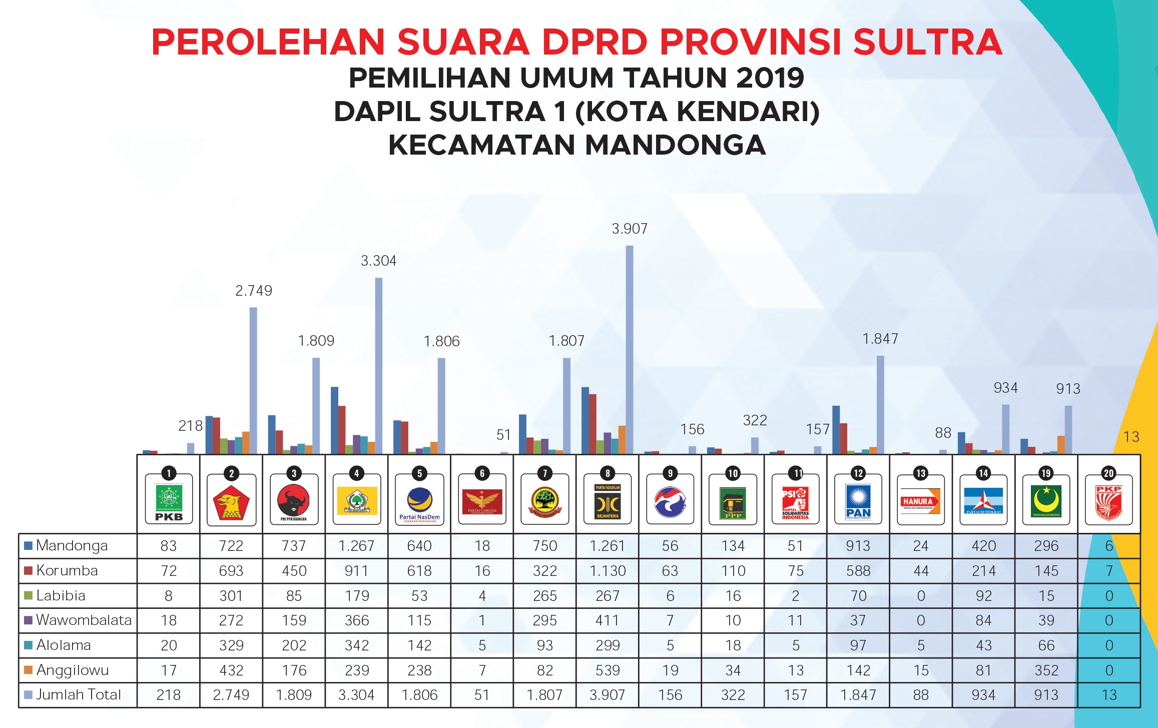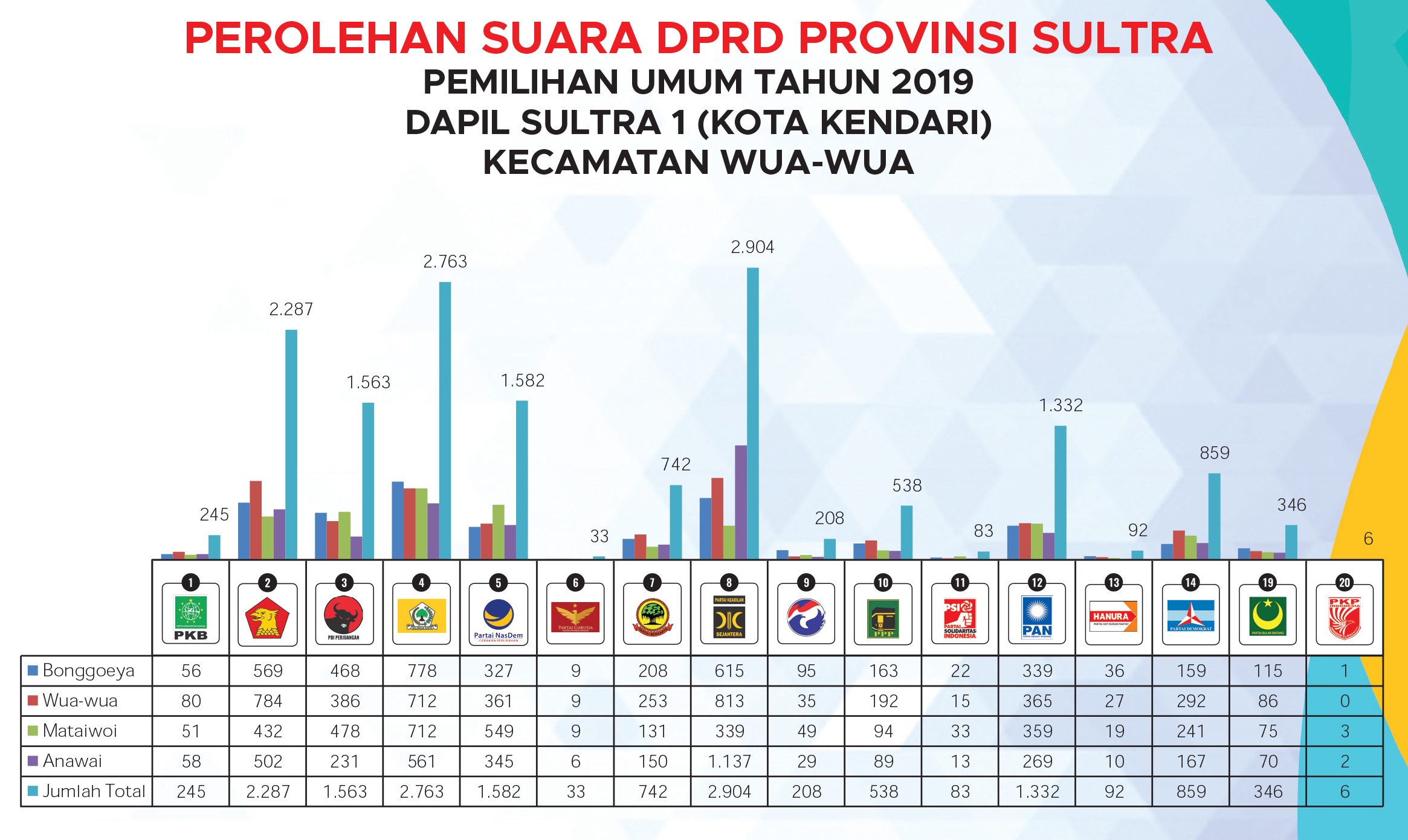 Perolehan Suara Pemilihan DPRD Provinsi Sulawesi Tenggara Pemilu 2019 di Kota Kendari