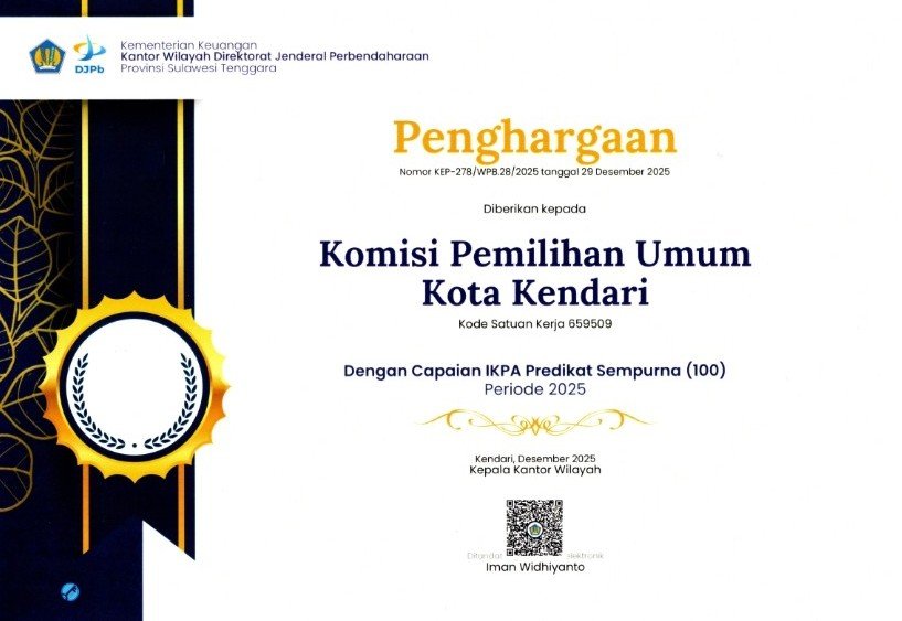 Sertifikat Penghargaan atas Capaian IKPA Sempurna (100)